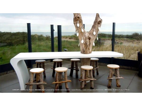 Bàn ăn mặt đá nhân tạo màu trắng nổi bật với hình dáng uốn cong mềm mại không để lại mấu nối giá trị sử dụng, thẩm mỹ mang lại cao cho không gian và cho người sử dụng sự thoải mái nhất.